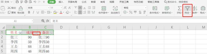 3. 筛选,对表格信息筛选能更快捷的查找需要的信息,在表格中选中内容的菜单栏,点击筛选即可,之后就可以点击单元格下方的三角形,快速查找内容。