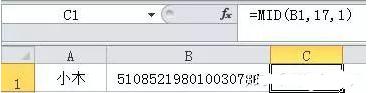 第二步:MID函数提取第17位数[部落窝教育-Excel筛选函数]