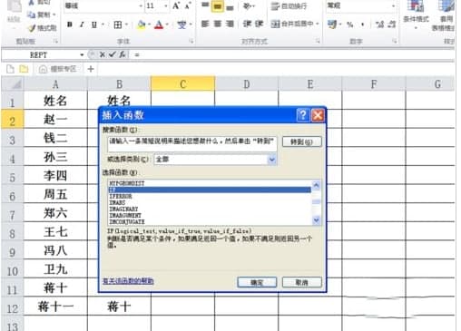 选择单元格c2,执行插入-函数命令,在弹出的对话框中选择if函数。