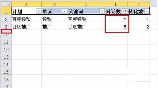 接着在表格中就全部显示A列中包含百度推广的所有数列,而其他的数据会隐藏。