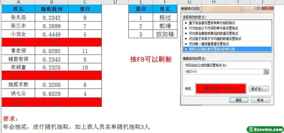 可以用条件格式抽取前3名吗?方法与上述相同。首先选择数据区-条件格式-新规则-使用如图所示的公式
